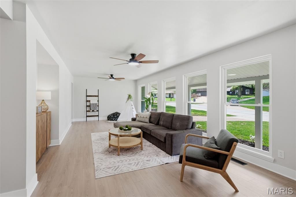 Welcome home to this fully renovated and absolutely stunning ranch home nestled on a quiet cul-de-sac in sought-after Creve Coeur! This 4-bedroom, 2 full bath home offers true main-level living with a bright, open-concept floor plan designed for today's lifestyle. Step inside to find luxury vinyl plank flooring flowing seamlessly throughout the entire home, including the beautifully finished lower level. The spacious family room opens to a completely updated kitchen featuring granite countertops, abundant cabinetry, and brand-new stainless steel appliances-perfect for both everyday living and entertaining. Enjoy your morning coffee or unwind in the evenings on the screened-in, covered deck overlooking the backyard-a rare and inviting outdoor space. No detail was overlooked in this top-to-bottom renovation, including a new roof, gutters, soffits, fascia, electrical service and panel, lighting throughout, updated plumbing, fully renovated bathrooms, new kitchen, interior doors, hardware, and more. The basement has been fully finished with new stair construction, adding valuable living space. All work has been completed with permits and includes a certificate of final inspection and occupancy for peace of mind. Ideally located just minutes from the movie theatre, restaurants, shopping, and Barnes-Jewish West County Hospital, this move-in ready home perfectly combines luxury, convenience, and an unbeatable location-don't miss your opportunity!