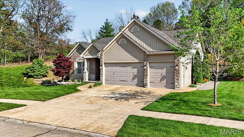 Meticulously maintained 3-bedroom, 2-bath ranch nestled in the highly sought-after Silverstone Trails Subdivision, designed for both comfort and effortless entertaining. The main level showcases an open-concept layout anchored by a stunning vaulted great room with a gas fireplace, seamlessly flowing into a beautifully appointed vaulted kitchen featuring custom cabinetry, a breakfast bar, and a bay window with a full-light patio door that fills the space with natural light.The spacious primary suite offers a charming bay window and a spa-inspired en-suite bath complete with a garden tub, separate shower, and dual adult-height granite vanities. The walk-in closet is thoughtfully designed with a private, direct connection to the laundry room, creating a truly convenient, low-maintenance lifestyle. Main floor laundry and updated light fixtures throughout further enhance everyday ease. Showing begin Thursday 4/16.Step outside to a luxury patio designed for entertaining, complete with a built-in waterfall, gas firepit, direct gas line for grilling, and beautifully landscaped surroundings-truly an entertainer's oasis.The lower level offers built-in storage, a full rough-in for a future bathroom, and the potential to add an additional bedroom, providing excellent flexibility for future expansion and added value.